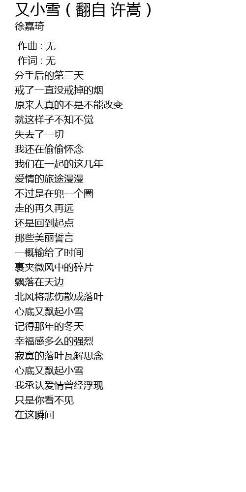 | [01:36.206] | xīn dǐ yòu piāo qǐ xiǎo xuě |
