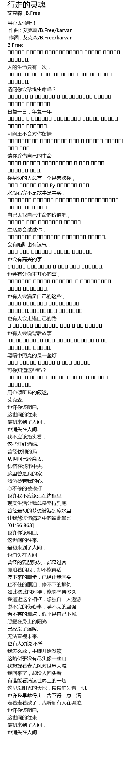 | [00:01.000] | 作词 : 艾克森/B.Free/karvan |