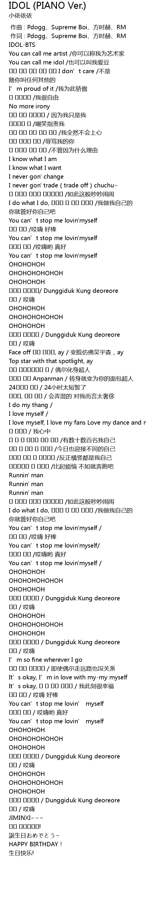 | [00:15.86] | You can call me idol /也可以叫我爱豆 |