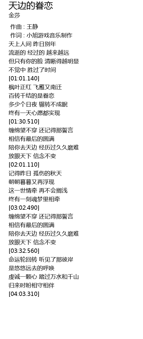| [00:01.00] | 作词 : 小旭游戏音乐制作 |