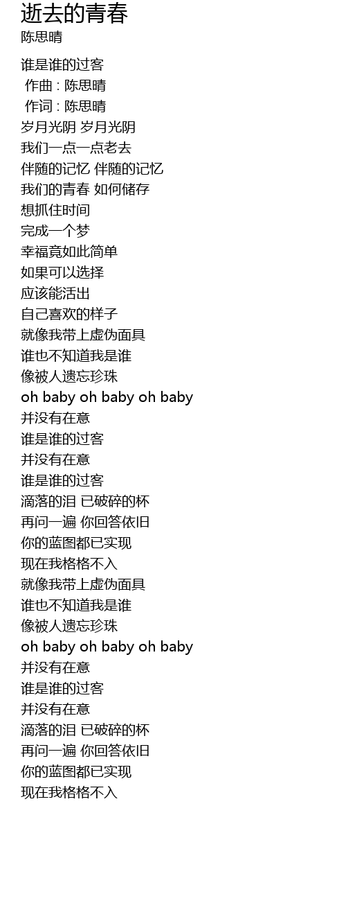 | [00:00.25] | suì yuè guāng yīn suì yuè guāng yīn |