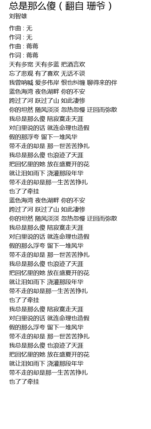 | wǒ zǒng shì nà me shǎ péi jì mò zǒu tiān yá | |