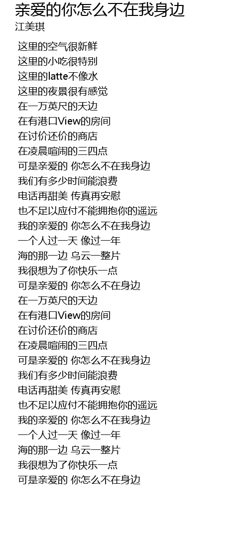 | [02:55.700] | 可是亲爱的 你怎么不在我身边 |