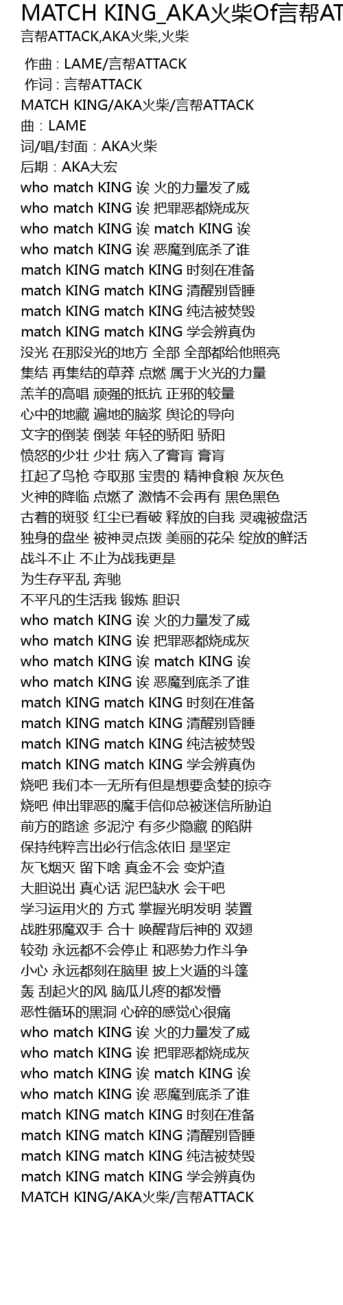 | [02:55.777] | MATCH KING/AKA火柴/言帮ATTACK |