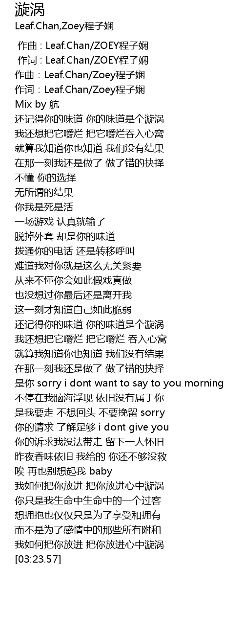 | [01:38.57] | 还记得你的味道 你的味道是个漩涡 |