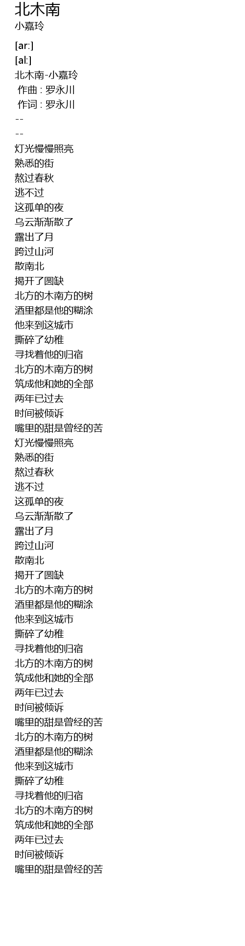 | [01:01.82] | běi fāng de mù nán fāng de shù |