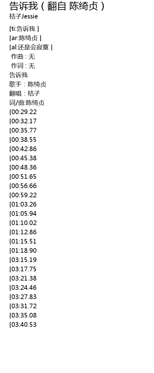 | [03:56.83][03:15.19][01:23.57] | 告诉我 |