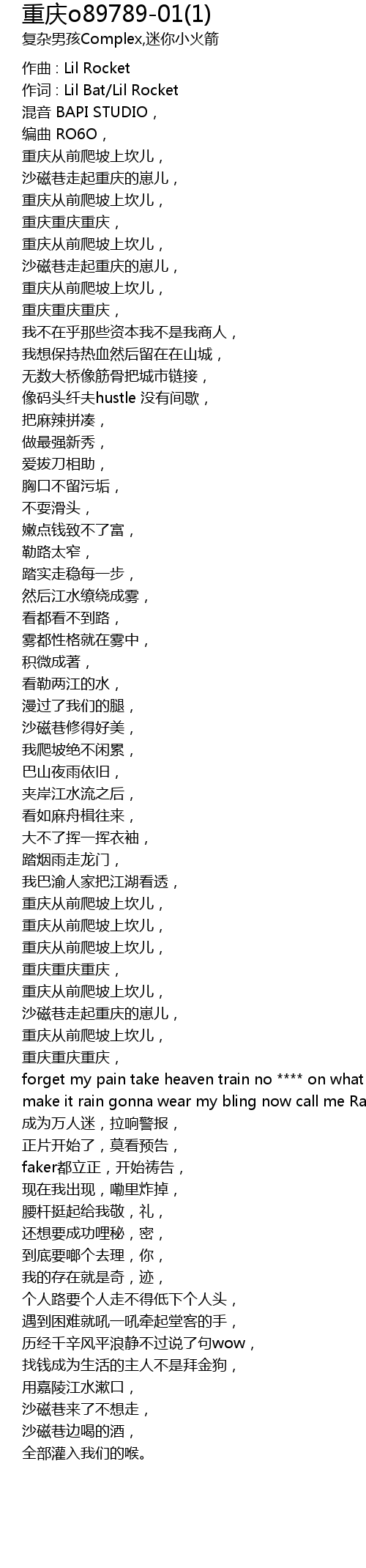 | chóng qìng cóng qián pá pō shàng kǎn ér, | |