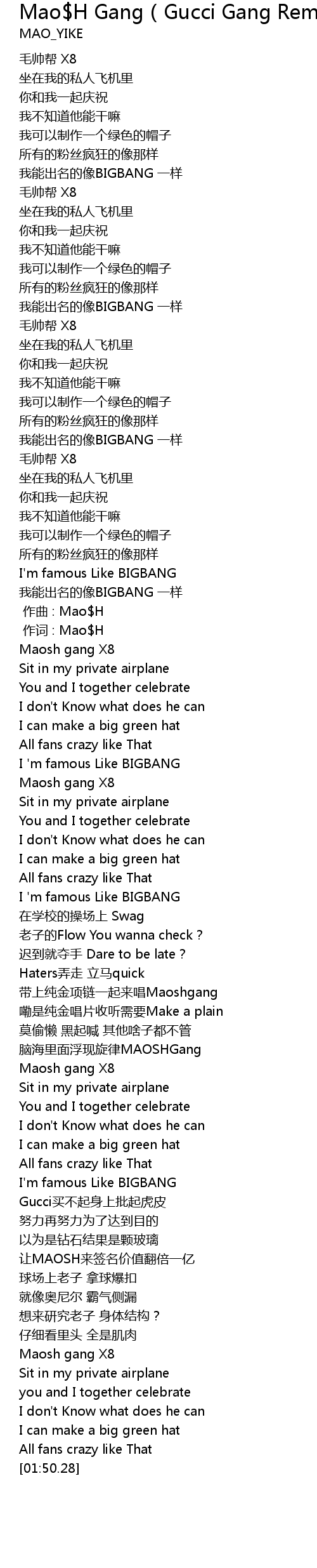 | [00:56.01] | 带上纯金项链一起来唱Maoshgang |