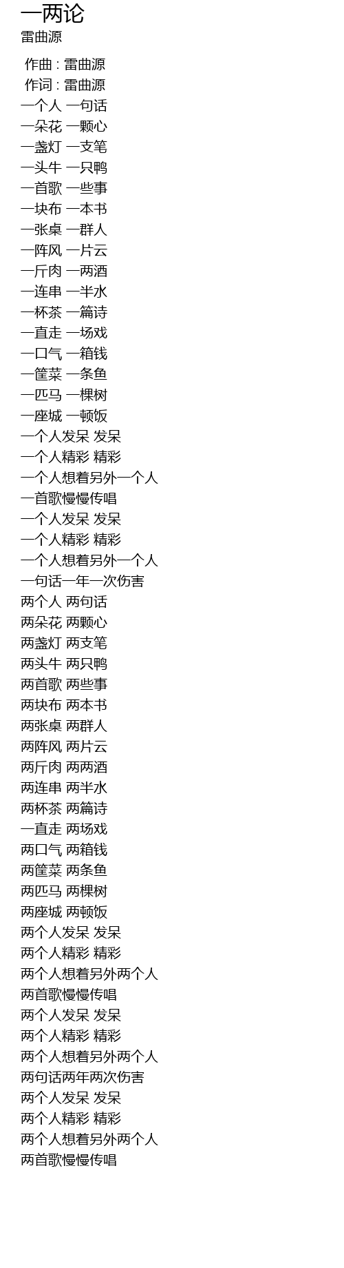 | [00:01.000] | 作词 : 雷曲源 |