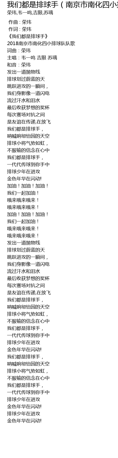| [00:04.510] | 2018南京市南化四小排球队队歌 |