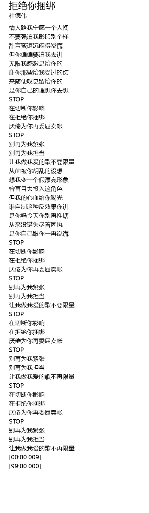 拒绝你捆绑 ju jue ni kun bang Lyrics