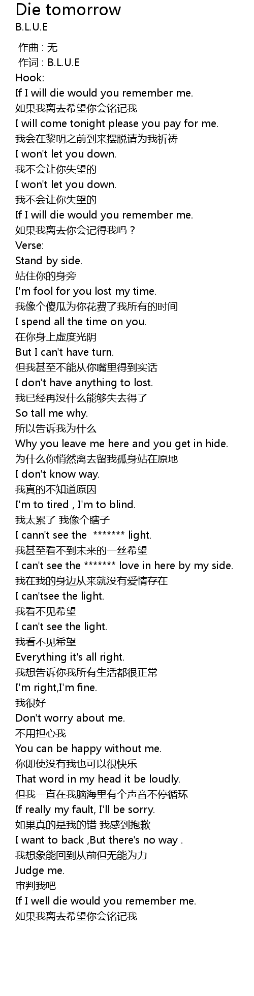 | [00:06.490] | rú guǒ wǒ lí qù xī wàng nǐ huì míng jì wǒ |