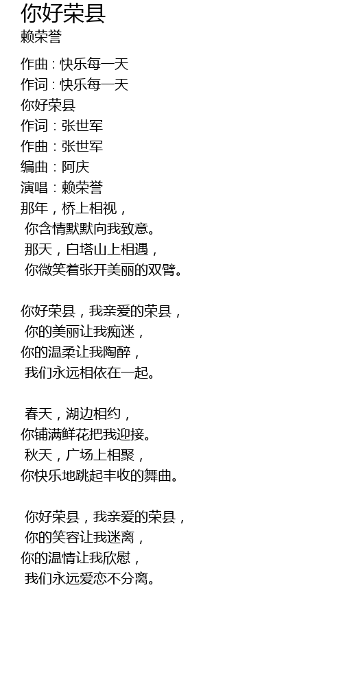 | 你好荣县,我亲爱的荣县, | |