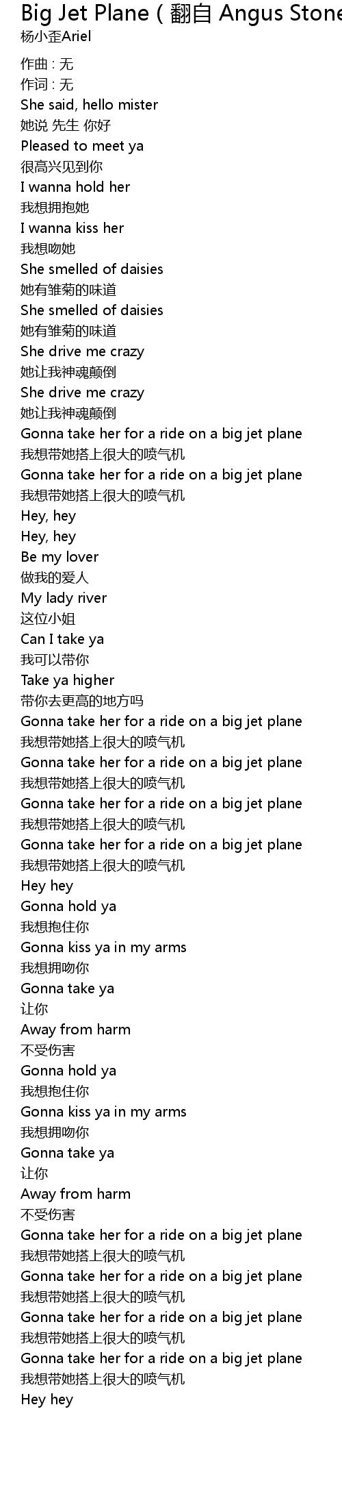 | Song | Big Jet Plane(翻自 Angus Stone) |