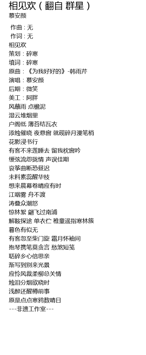 | [00:09.935] | 原曲:《为我好好的》-韩雨芹 |