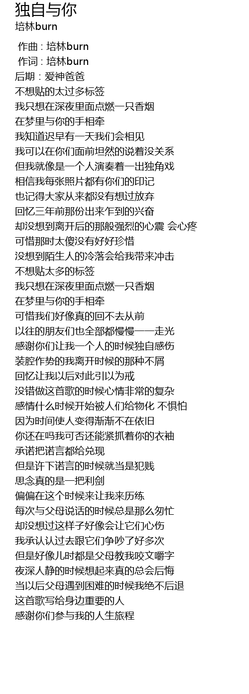 | [00:00.000] | zuò qǔ : péi lín burn |