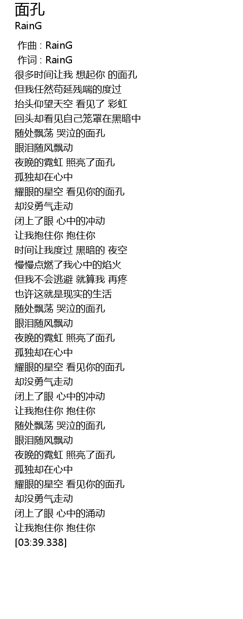 | [03:02.654] | suí chù piāo dàng kū qì de miàn kǒng |