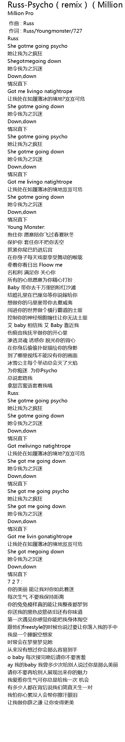 | [00:01.000] | 作词 : Russ/Youngmonster/727 |