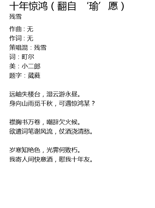 | wo ji ren jian kuai yi jiu, wei wo shi nian you. |