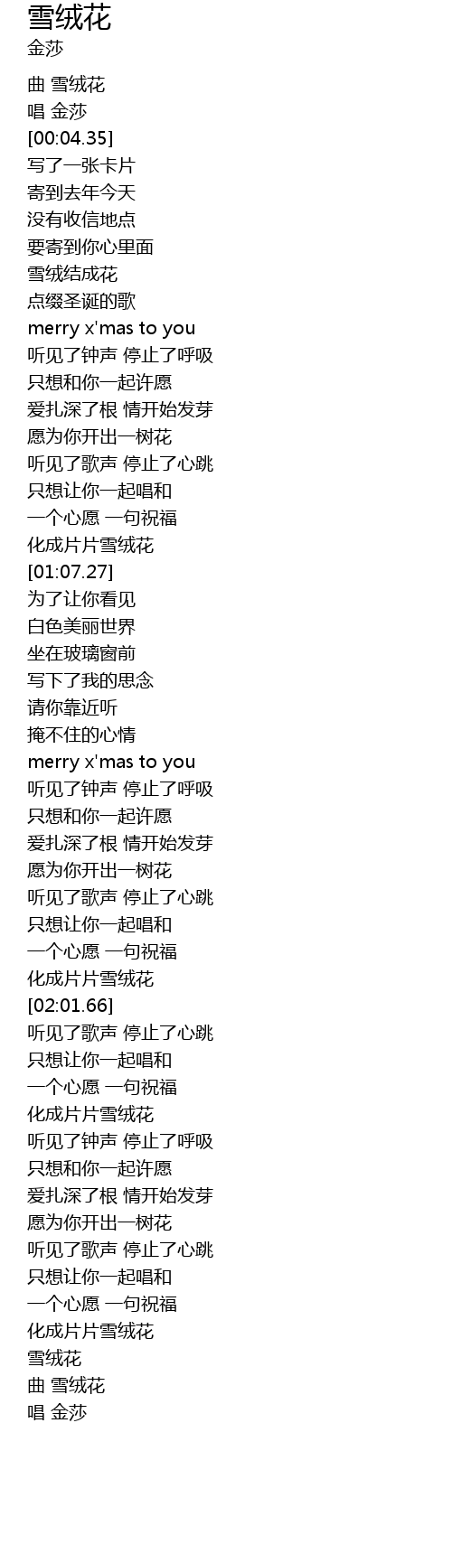 | [02:35.02] | huà chéng piàn piàn xuě róng huā |
