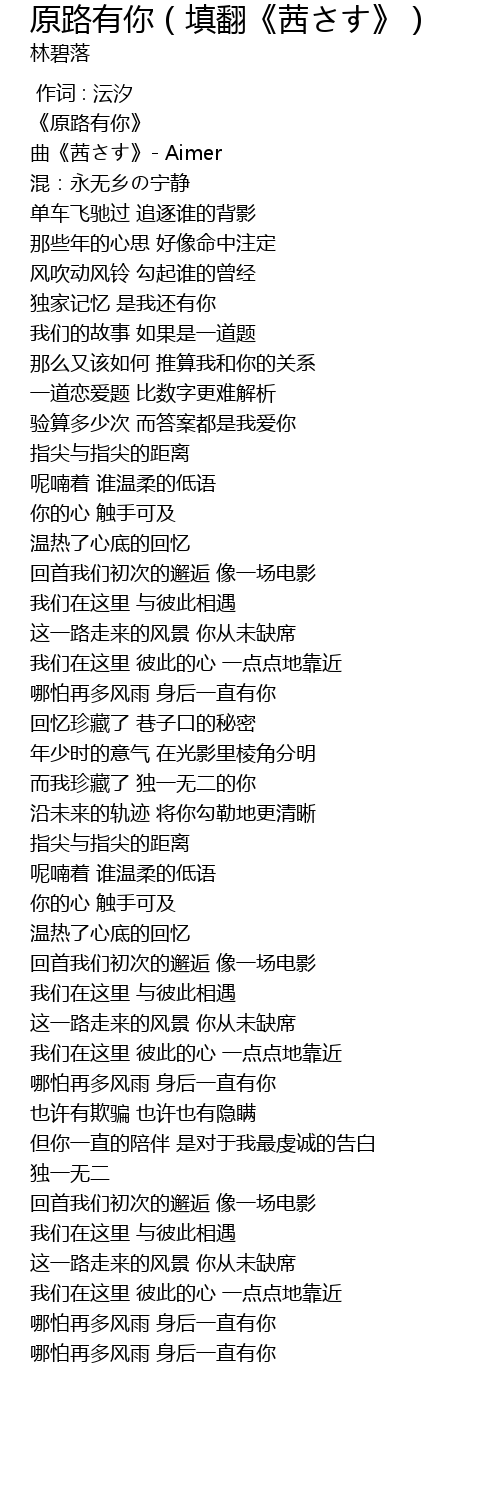 | [03:26.975] | zhe yi lu zou lai de feng jing ni cong wei que xi |