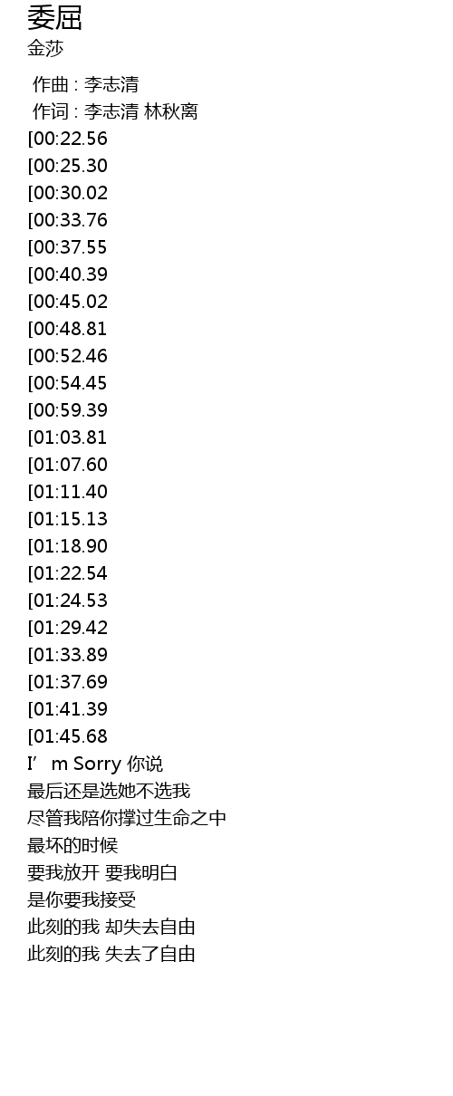 | [02:33.96][00:52.46] | I' m Sorry ni shuo |
