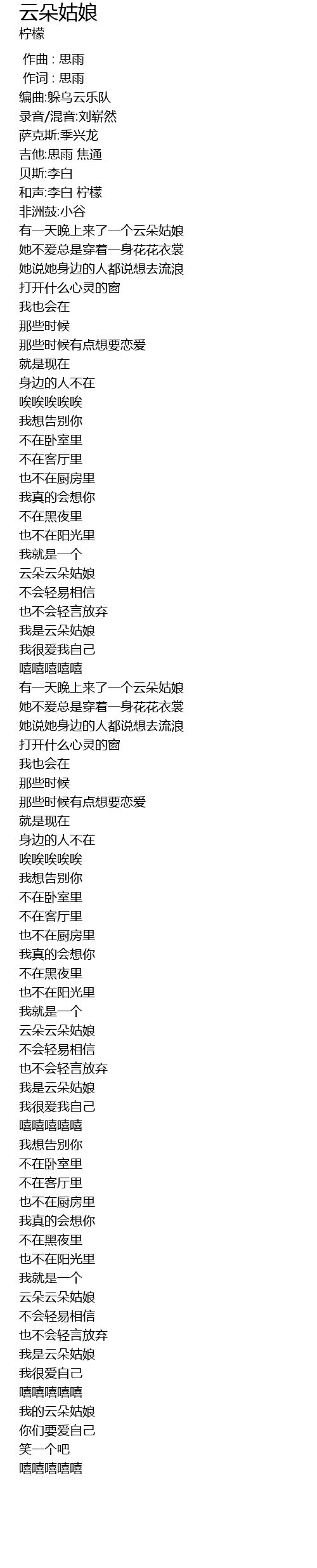 | [02:48.54] | 我是云朵姑娘 |