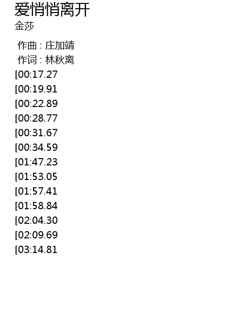 | [02:57.67][01:58.84][00:52.73] | 爱 悄悄这样离开 |