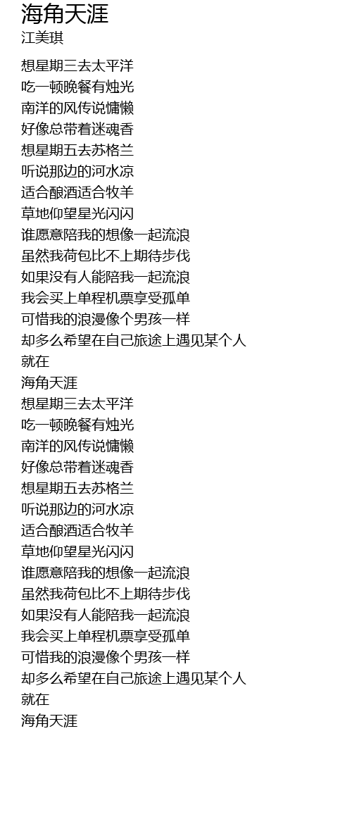 | [01:51.16] | hǎi jiǎo tiān yá |