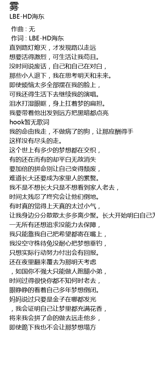 | [00:01.000] | 作词 : LBE-HD海东 |