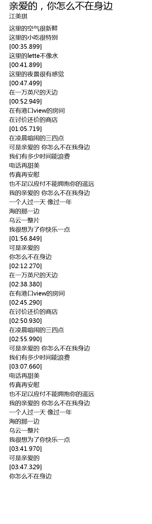 | [02:56.890] | 可是亲爱的 你怎么不在我身边 |