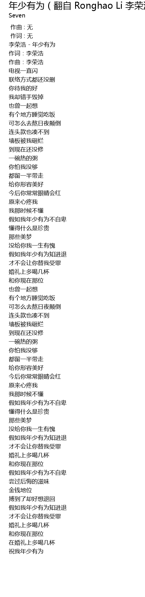 | [00:05.51] | 李荣浩 - 年少有为 |