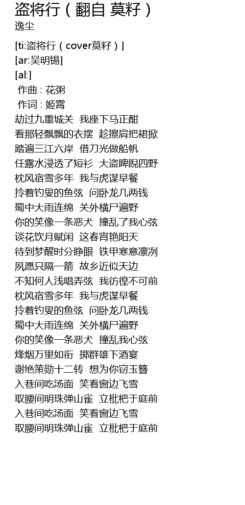 | [ti:盗将行(cover莫籽)] | |