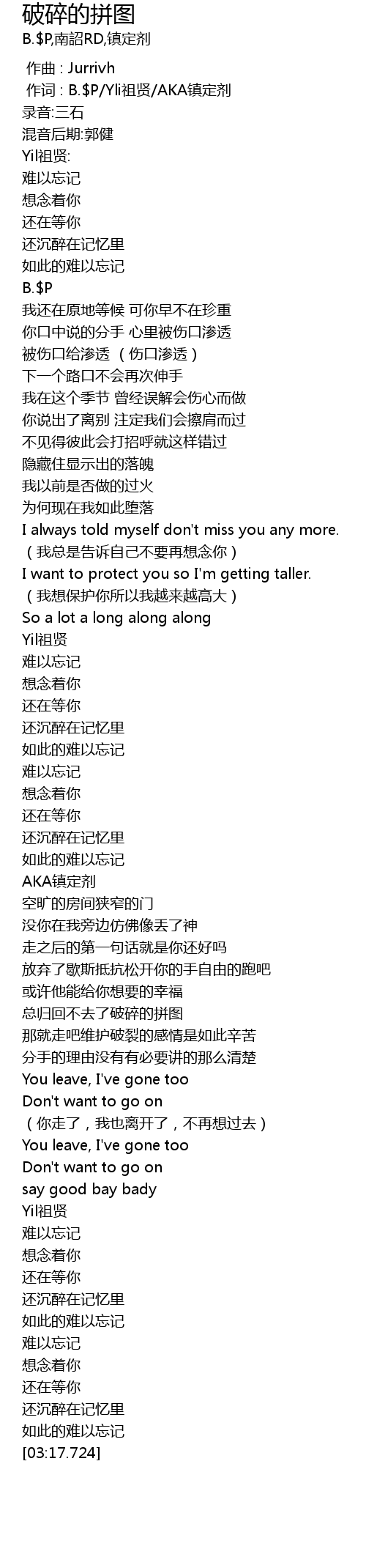 | [00:01.000] | 作词 : B.$P/Yli祖贤/AKA镇定剂 |