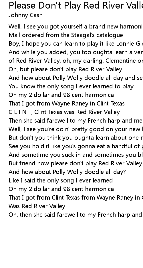 of Red River Valley, oh, my darling, Clementine or Salty Dog |