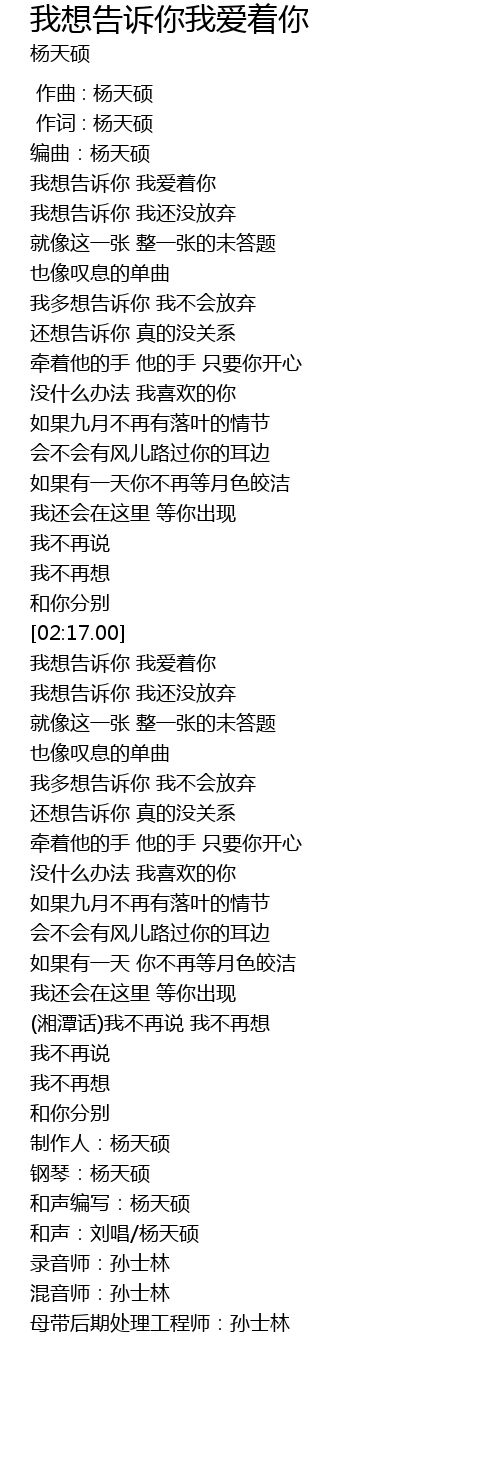 | [02:37.00] | 我想告诉你 我爱着你 |