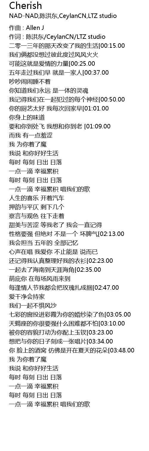 | [00:12.00]二零一三年的那天改变了我的生活[00:15.00]我从没想过这个问题但我走火入魔[00:17.00]你对我说浪漫的人 在世上很多[00:20.00]我们俩都没想过彼此度过风风火火 [00:23.00]可能这就是爱情的力量[00:25.00]坚实的臂膀相互吸引的巨大场强[00:28.00]我希望开车带着你去浪[00:31.00]一起看夕阳在一起一生最大的愿望 [00:34.00]五年走过我们早 就是一家人[00:37.00]把爱情放进口袋 坏的丢出家门[00:40.50]吵吵闹闹睡不着 是为你沉沦[00:43.00]你知道我们永远 是一体的灵魂 [00:46.80]我记得我们在一起犯过的每个神经[00:50.00]我记得生病照顾我时你的每个神情[00:52.80]我记得背后抱你总能让我感到安宁[00:55.70]我记得我看你时每一眼都让我高兴 [00:58.60]你的厨艺太好 我每次回家早[01:01.00]你说要抓住胃 每次都吃很饱[01:04.00]你身上的味道 这辈子忘不了[01:07.00]要和你到处飞 我想和你到老 [01:09.00]你 脸上的酒窝 仿佛是开在夏天的花朵[01:15.70]而我 有一点羞涩 只想拥你在我心窝[01:23.00]我 为你着了魔 变成了一个更好的我[01:26.80]我说 和你好好生活 不再让你伤心难过[01:34.00]每时 每刻 日出 日落 牵着手走过[01:39.00]一点一滴 幸福累积 唱我们的歌[01:45.70]每时 每刻 日出 日落 牵着手走过[01:52.00]一点一滴 幸福累积 唱我们的歌 [01:57.00]人生的喜乐 开着汽车 看人形形色色[02:00.00]押韵与平仄 剩下几个 与你喜怒哀乐[02:04.00]察言与观色 往下走着 还得继续生活[02:06.00]甜美与苦涩 等我老了 我会一直记得 [02:09.00]性格要强 但绝对 不是一个 坏脾气[02:13.00]想着远方 我想要 能陪着你 更独立[02:15.00]我会担当 五年的 全部记忆 都给你[02:18.00]心声在唱 我爱你 不止能是 说而已 [02:21.00]还记得我认真整理好我的衣衫[02:23.00]还记得朋友开的一家临街小酒馆[02:25.00]还记得这首情歌唱完奇妙的气氛将你我感染[02:30.00]还记得送你回家之后心中小鹿不停乱窜 [02:33.00]一起去了海南到天涯海角[02:35.00]看着天色焕然感叹人生还早[02:38.00]但是有了你之后我不能再是一颗飘摇的海草[02:41.00]是时候扎根地下 荫庇你 在每场风雨来到 [02:44.00]每逢情人节我都会把玫瑰扎成捆[02:47.00]用相机记录我俩的点滴只想把情感保温[02:50.00]好看的皮囊之下你就是我想要的有趣灵魂[02:52.00]但我遗憾的是没能给你一场浪漫的求婚 [02:56.00]爱干净会持家 你的美并非带雨梨花[02:59.00]我们一起不惧风沙 我为你披上圣洁的婚纱[03:01.80]七彩的窗投进彩霞为你的婚纱染了色[03:05.00]坚毅的心不会泯灭与你的日子不会蹉跎 [03:08.00]天蝎座的你很要强什么困难都不怕[03:10.00]什么苦难都能忍受你内心真强大[03:13.70]但我不能任你一人把苦水全部咽下[03:16.00]无论何时我的臂膀都属于你不要感到害怕 [03:19.70]被你的容貌打动为你配上玉钗[03:23.00]望着你的眼神然后拥你入怀[03:25.00]无论怎样我只取一瓢任他弱水三千[03:28.00]忍不住低下身来吻在你的眉间 [03:31.00]想把与你的日子刻成一张唱片[03:34.00]想给我的新娘带上最美的项链[03:37.00]老了之后看看我们过去的相片[03:40.00]与你海誓山盟我们下辈子也要相见 [03:43.00]你 脸上的酒窝 仿佛是开在夏天的花朵[03:48.00]而我 有一点羞涩 只想拥你在我心窝[03:55.00]我 为你着了魔 变成了一个更好的我[03:59.00]我说 和你好好生活 不再让你伤心难过[04:07.00]每时 每刻 日出 日落 牵着手走过[04:13.00]一点一滴 幸福累积 唱我们的歌[04:18.00]每时 每刻 日出 日落 牵着手走过[04:24.00] | LTZ chū pǐn yì diǎn yī dī xìng fú lěi jī chàng wǒ men de gē |