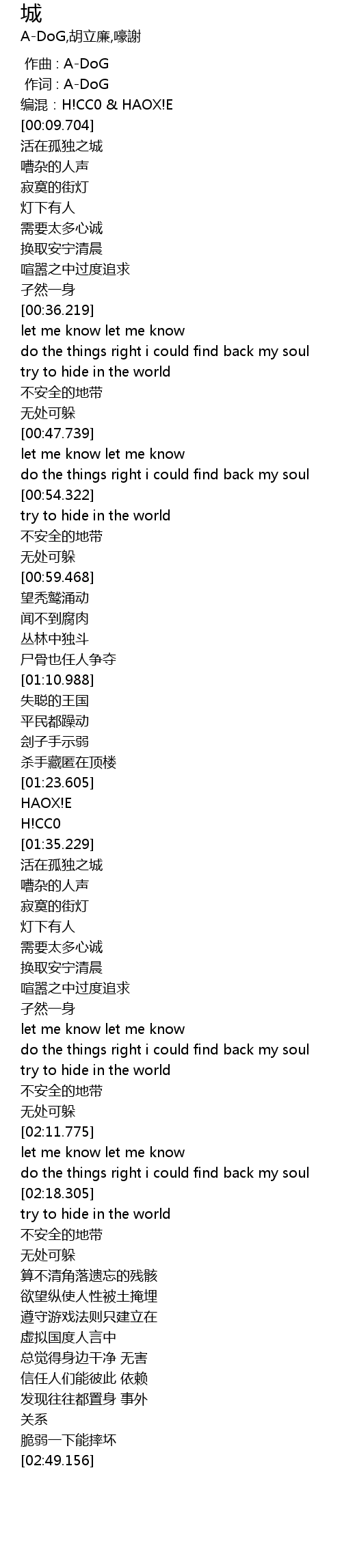 | [01:35.726] | huó zài gū dú zhī chéng |