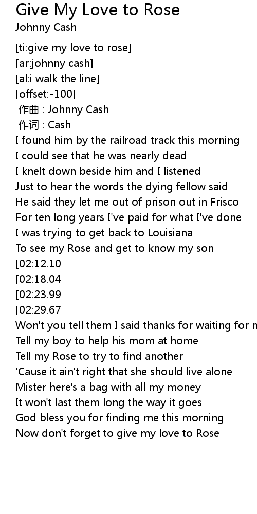 | [00:54.98][02:12.10] | Give my love to Rose please won't you mister? |