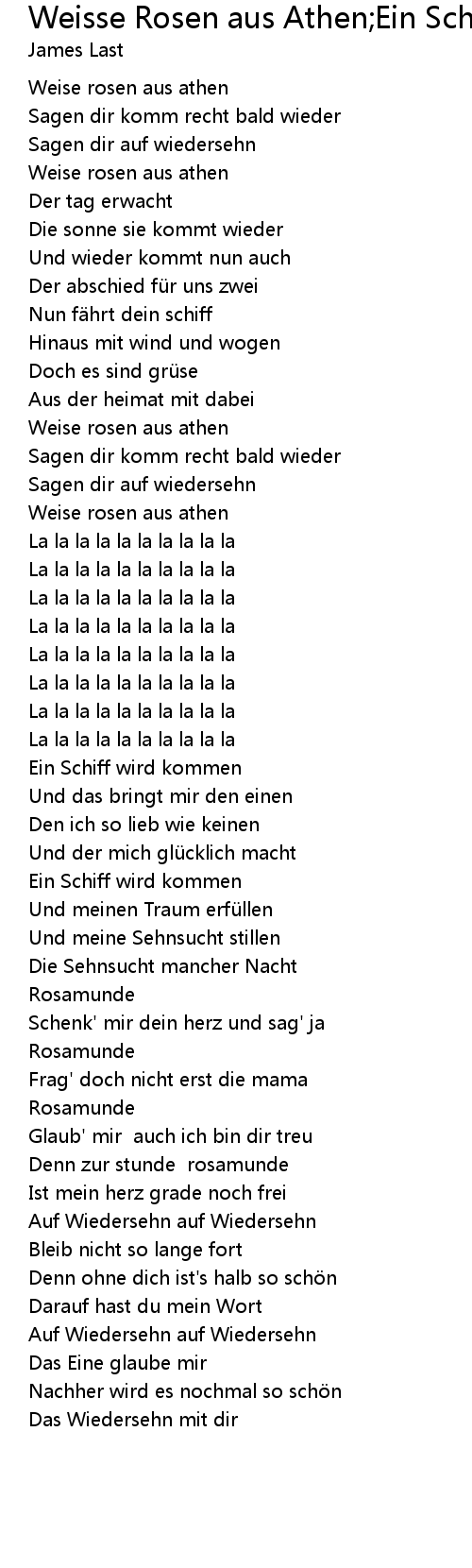 | Song | Weisse Rosen aus Athen;Ein Schiff wird kommen;Rosamunde;Auf Wiederseh’n |