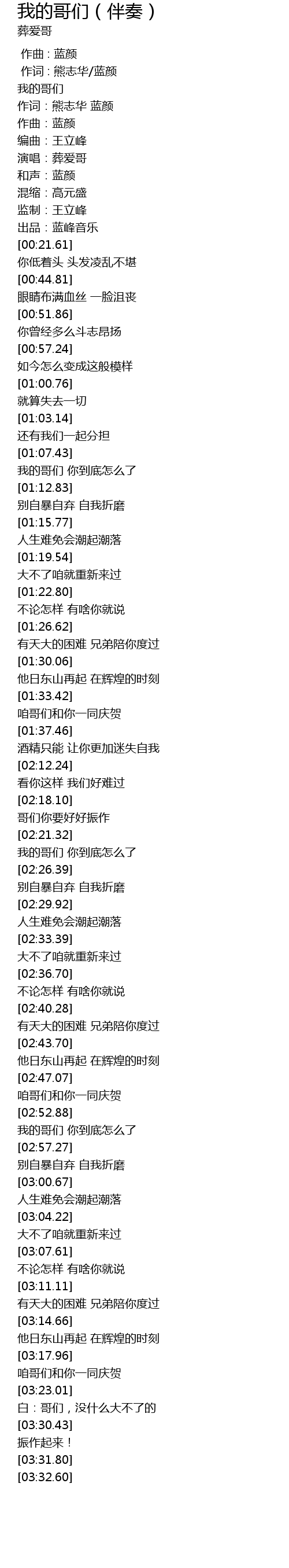| [03:11.35] | 有天大的困难 兄弟陪你度过 |