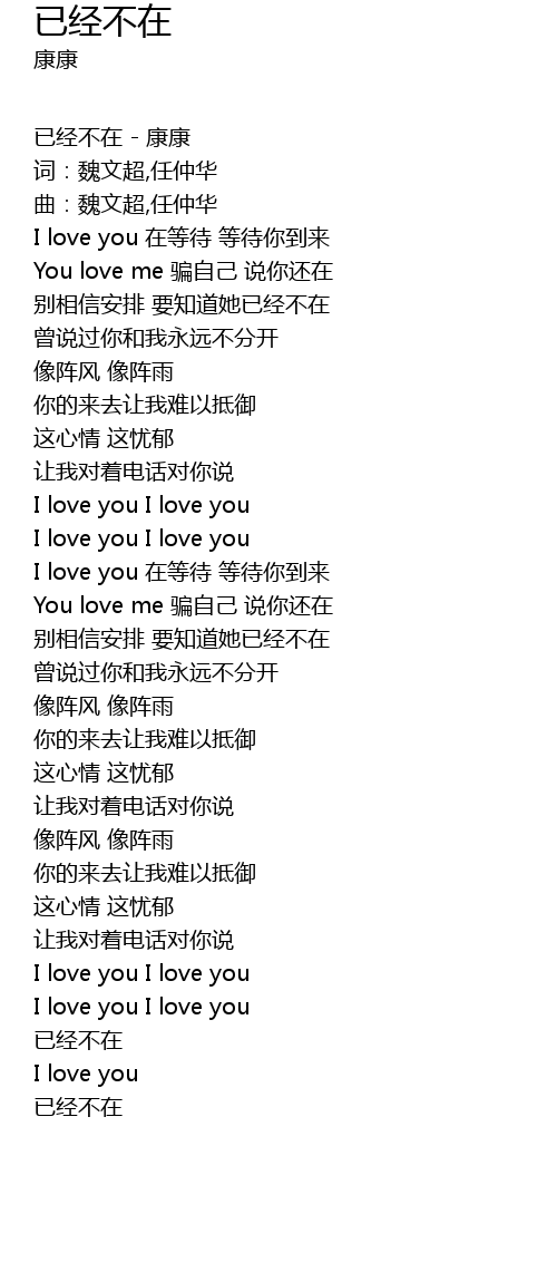 | I love you zài děng dài děng dài nǐ dào lái | |