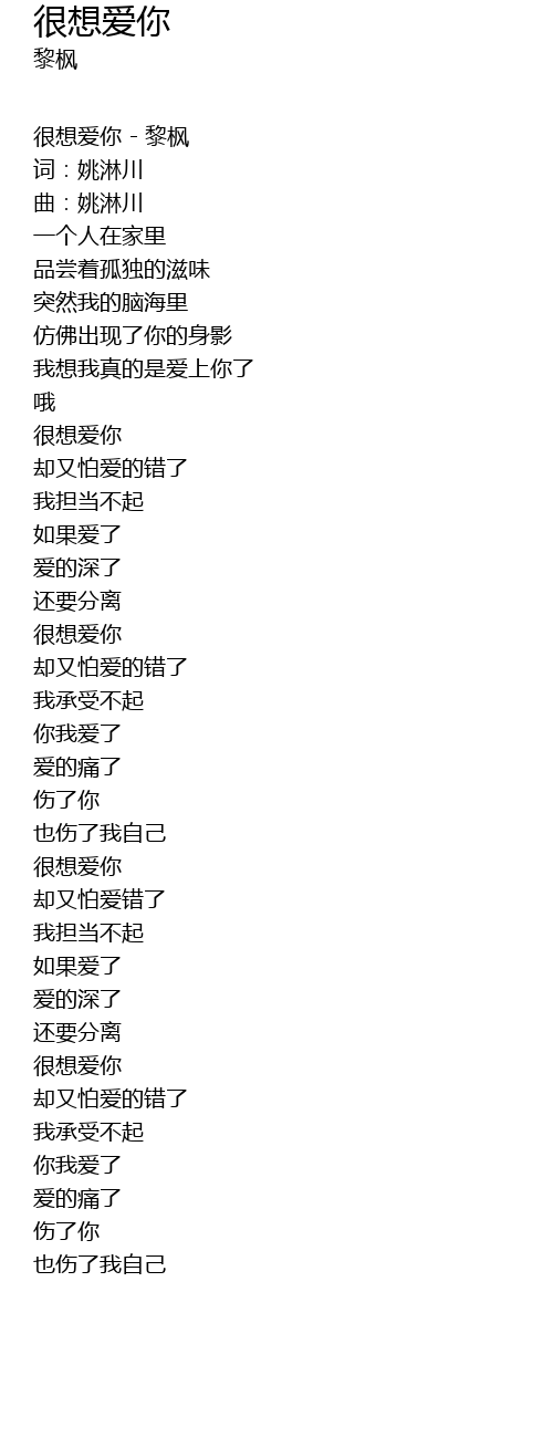 | 很想爱你 - 黎枫 | |