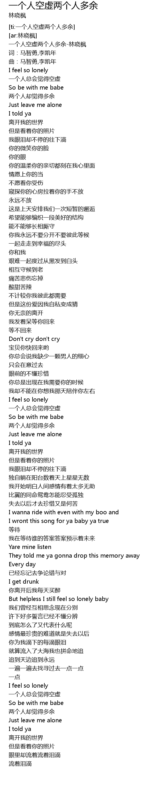 | [00:00.60] | 一个人空虚两个人多余-林晓枫 |