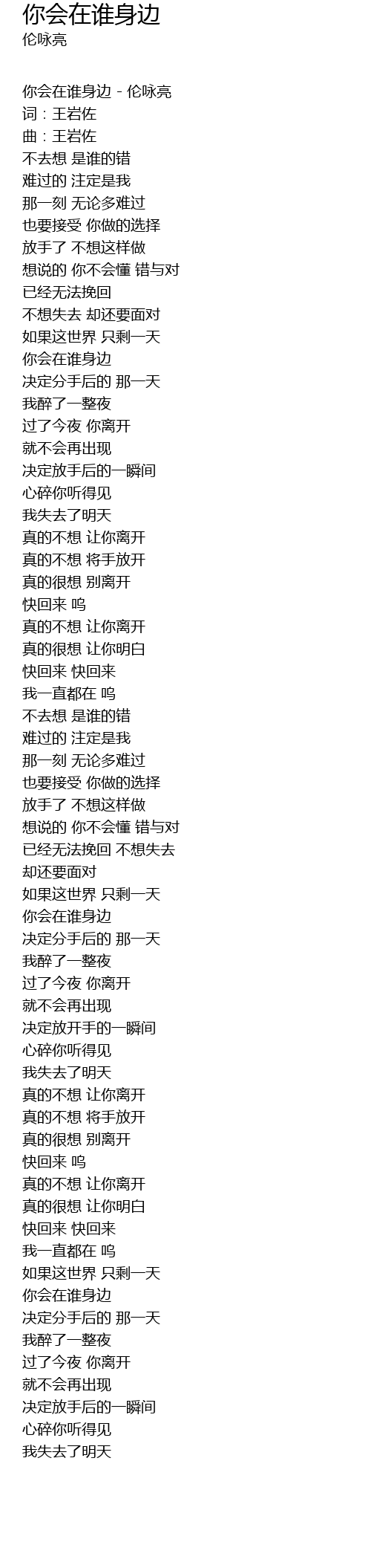 | nǐ huì zài shuí shēn biān lún yǒng liàng | |