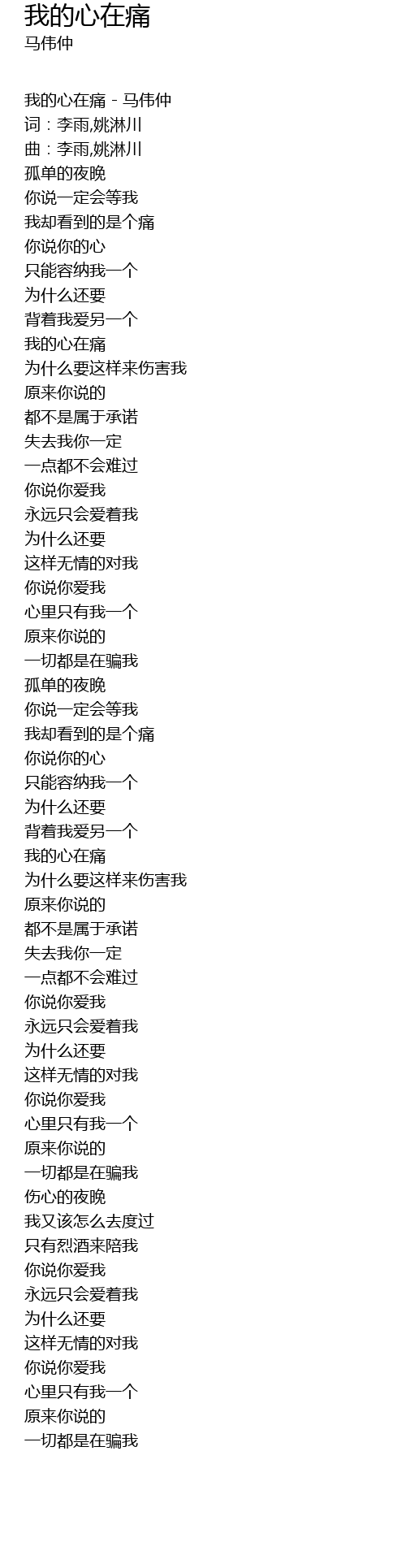 | 我的心在痛 - 马伟仲 | |