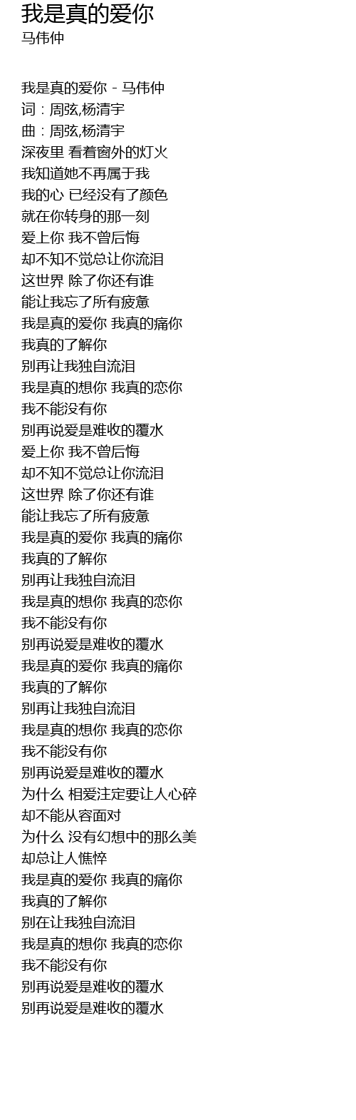 | 我是真的爱你 - 马伟仲 | |