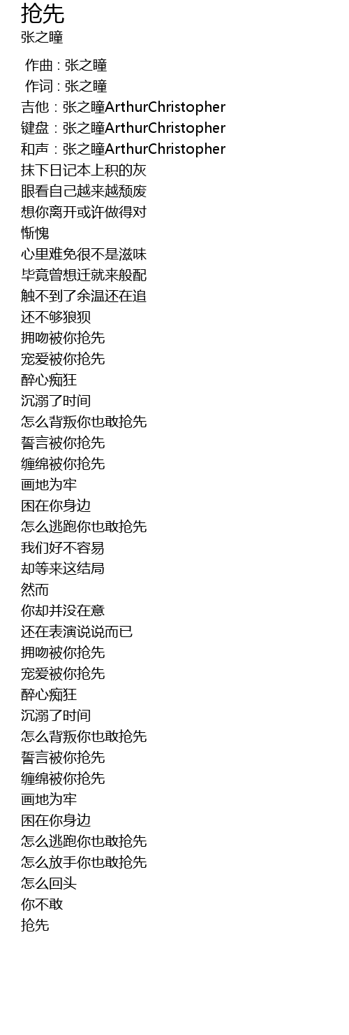 | [01:34.644] | zěn me bèi pàn nǐ yě gǎn qiǎng xiān |