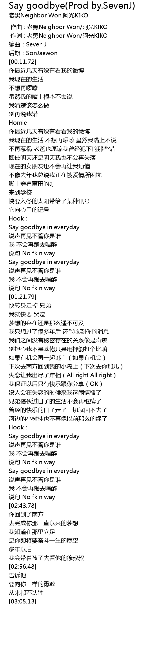 | [00:01.000] | 作词 : 老黑Neighbor Won/阿光KIKO |